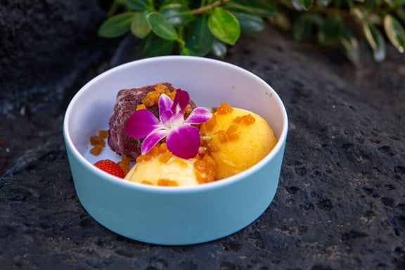 Tropical sorbets | grilled Hawaiian pineapple | whipped cream | strawberries